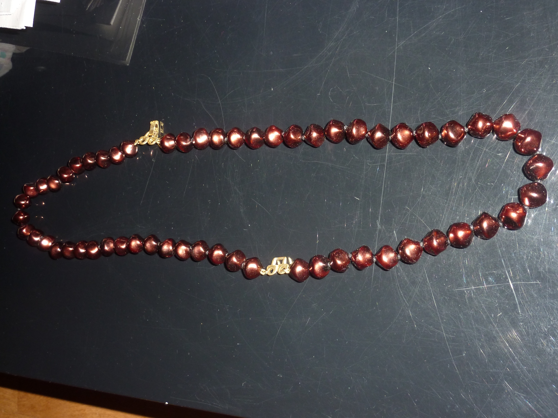 collier fantaisie mordoré marron en perles ( collier assez lourd )